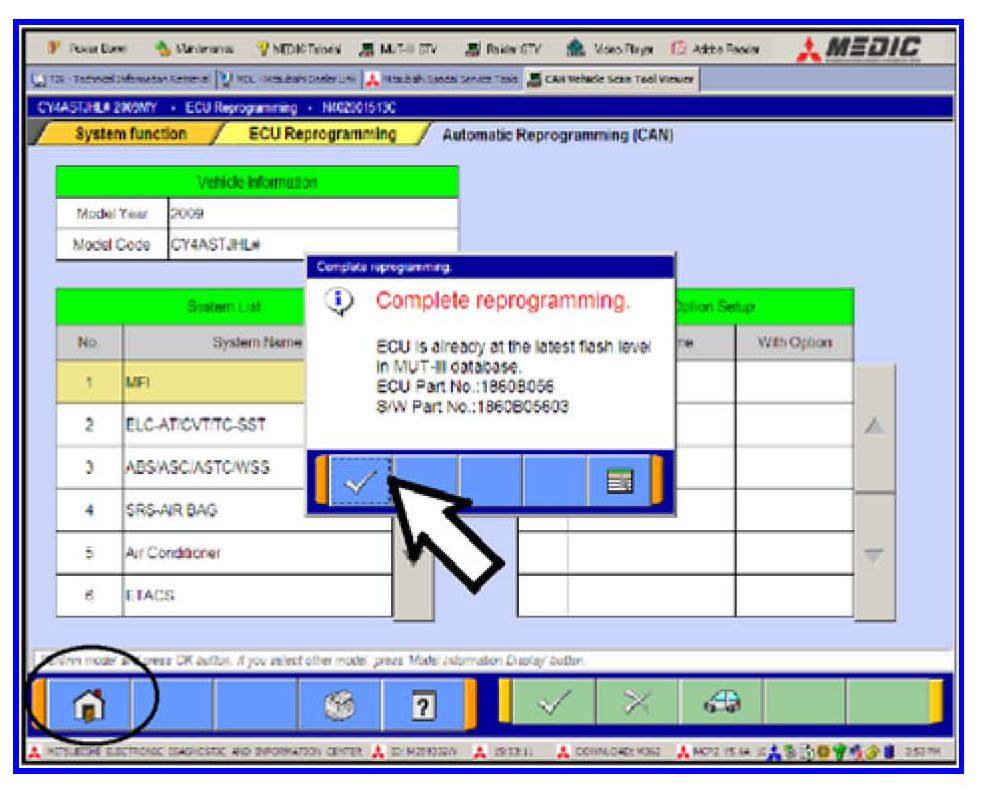 q. Click the check mark and you will be returned to the "ECU Reprogramming" page.