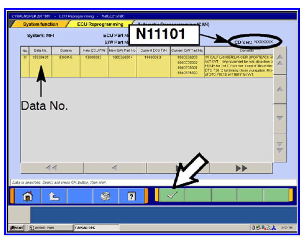 1. If the database number displayed on your MUT-III is N11101 or greater, continue to the Reprogramming Procedure.