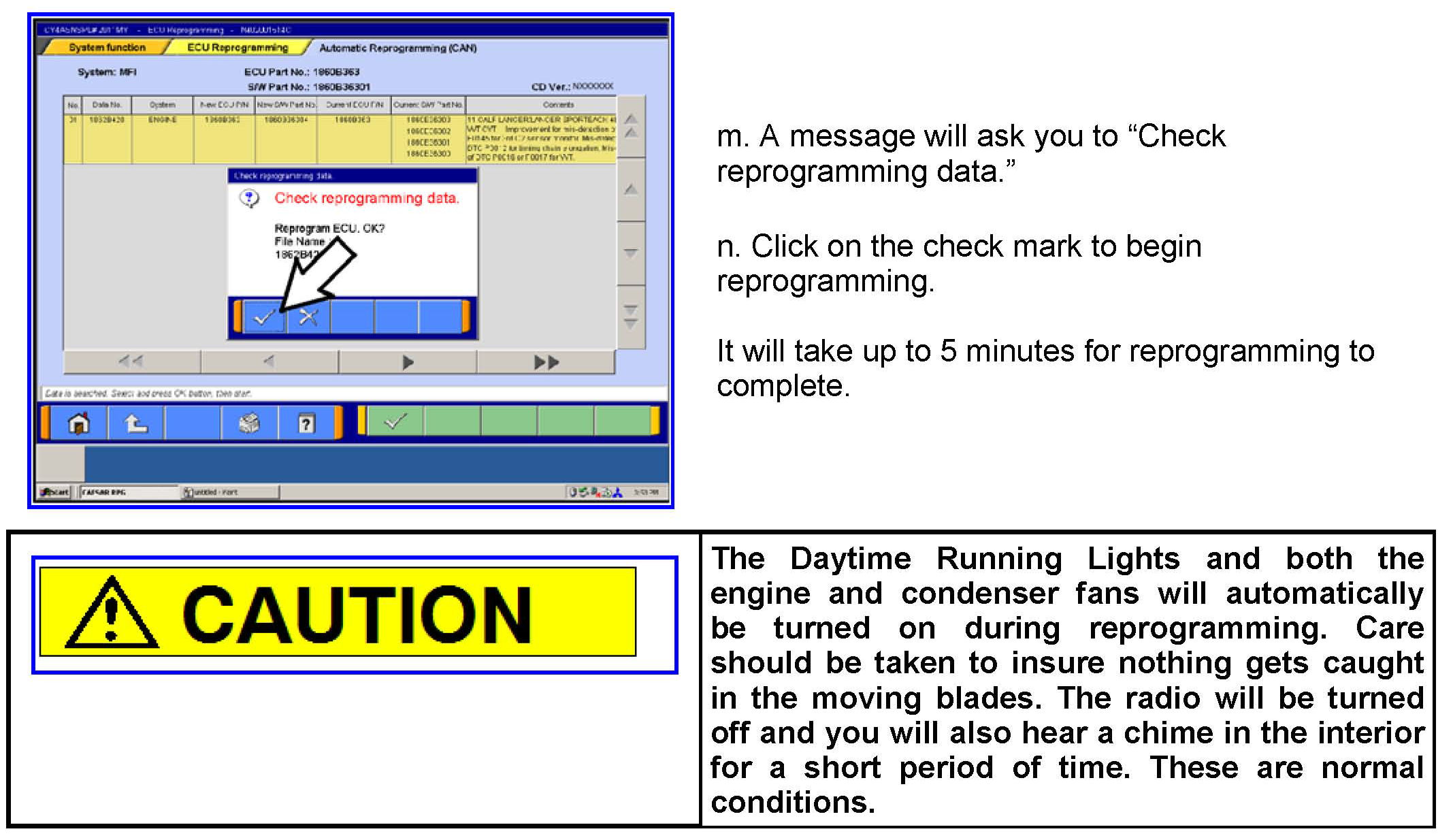1. Conduct the following steps to reprogram the ECM.