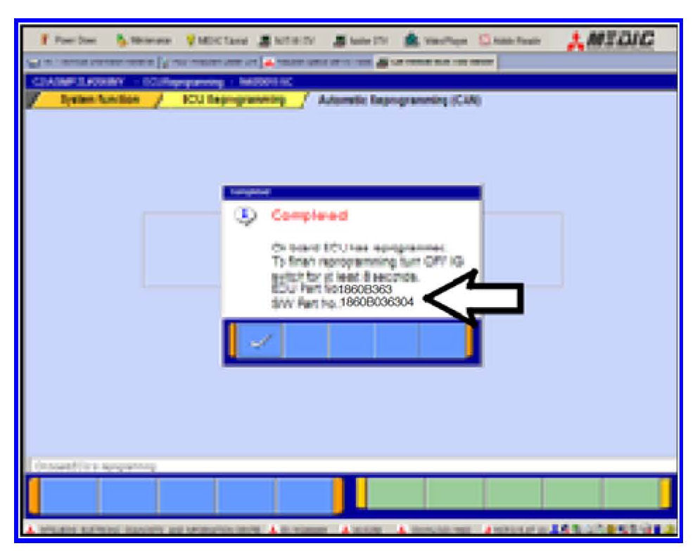 o. This message will display when ECM reprogramming is successfully completed. Confirm the "New S/W P/N" displayed matches the table at the beginning of this TSB.