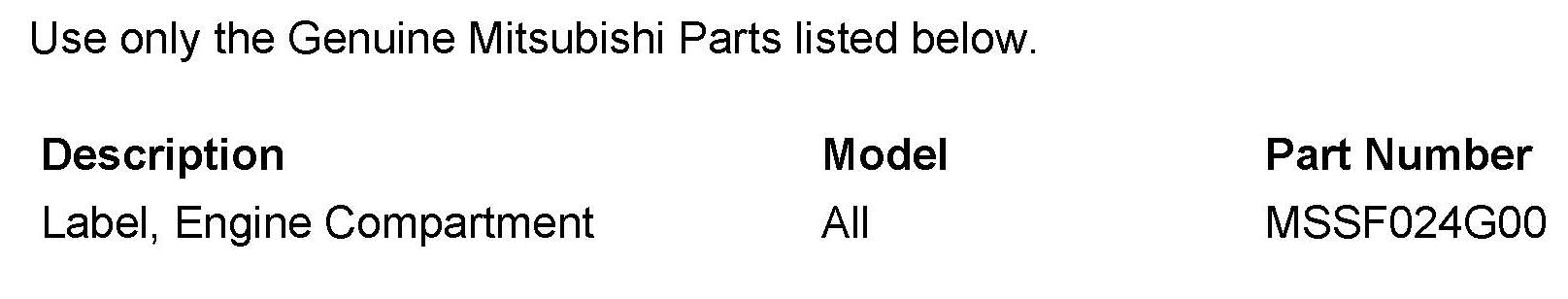 ^ "Engine Compartment/Control Module" label - p/n MSSF024G00.