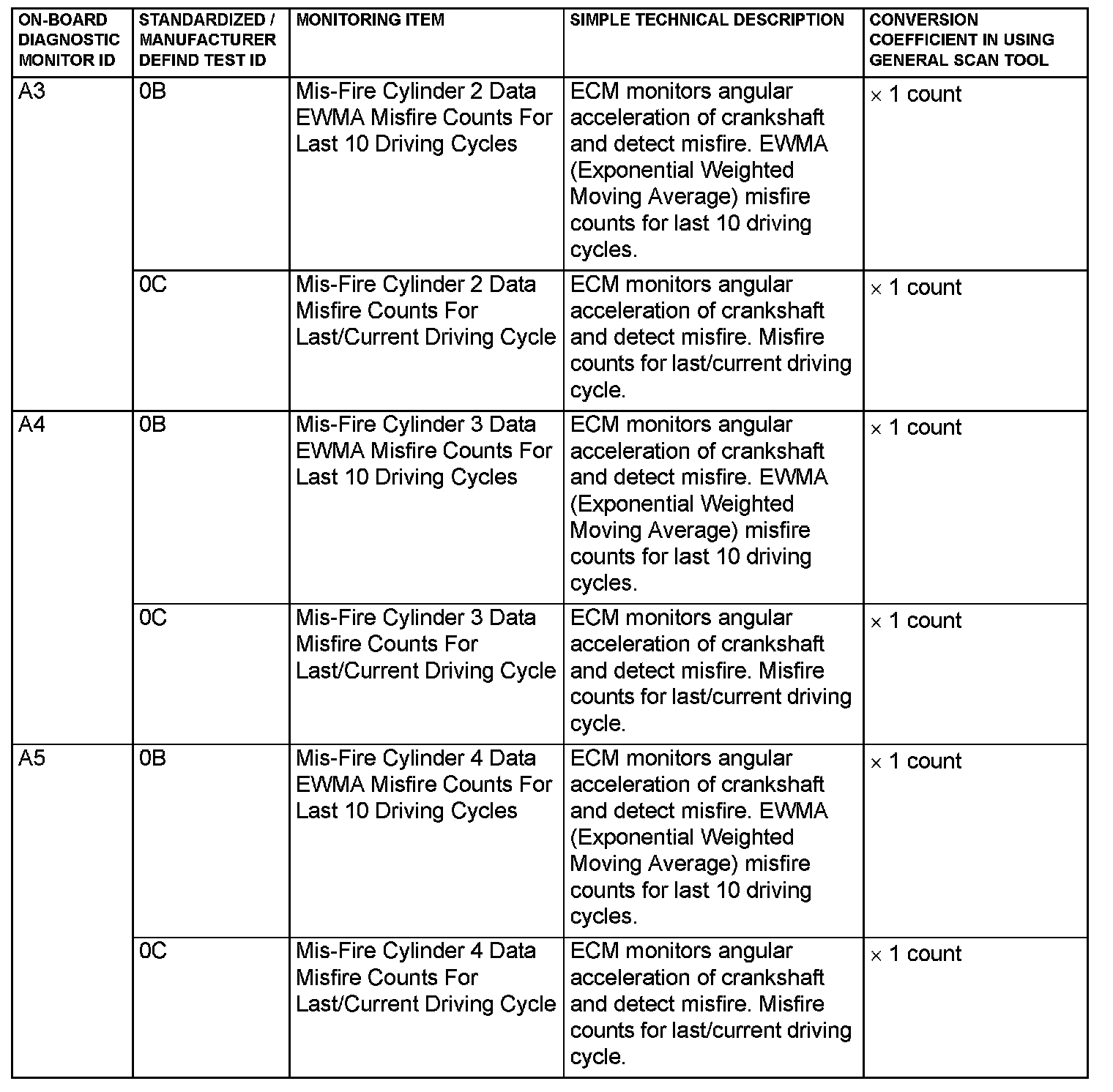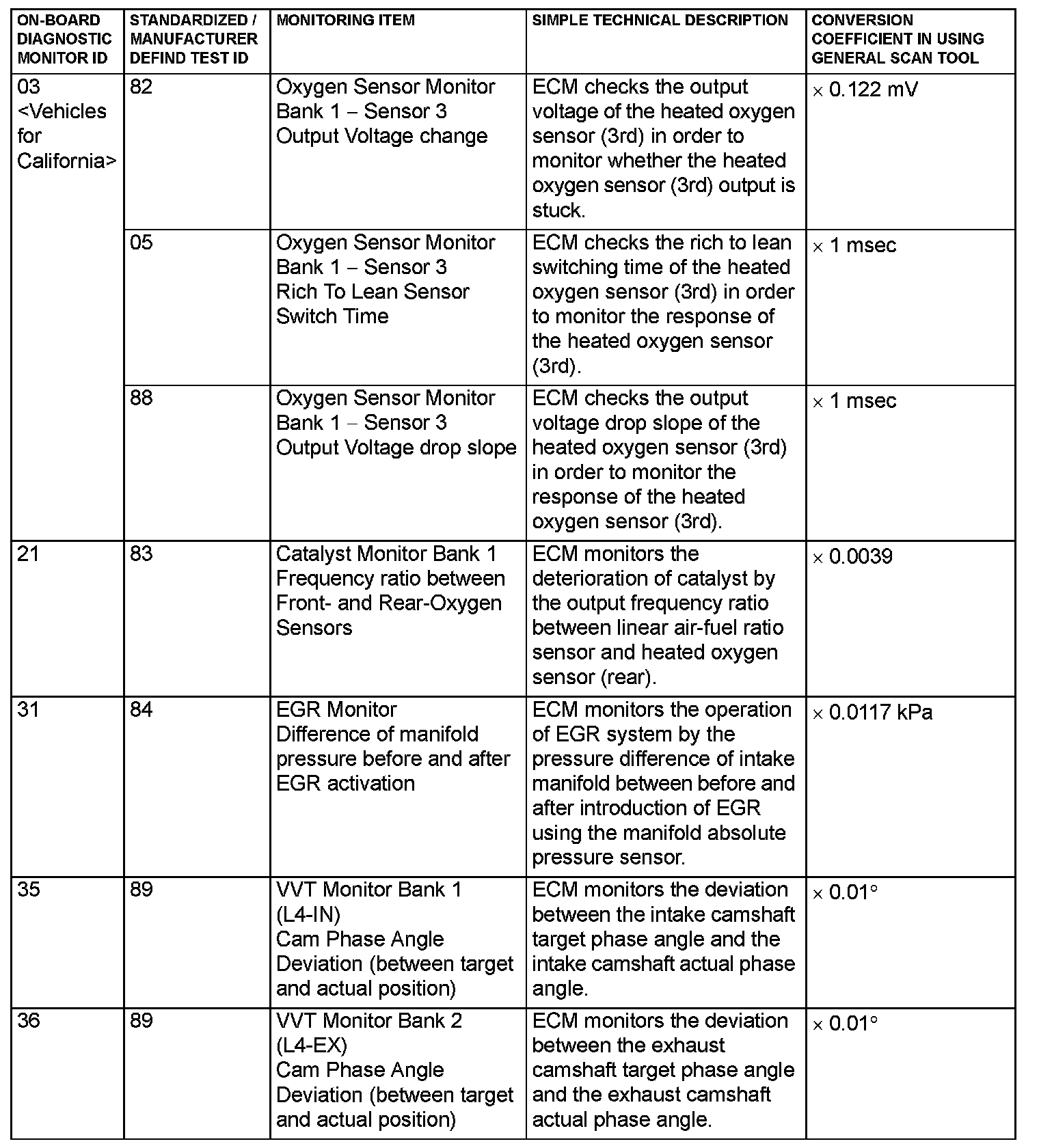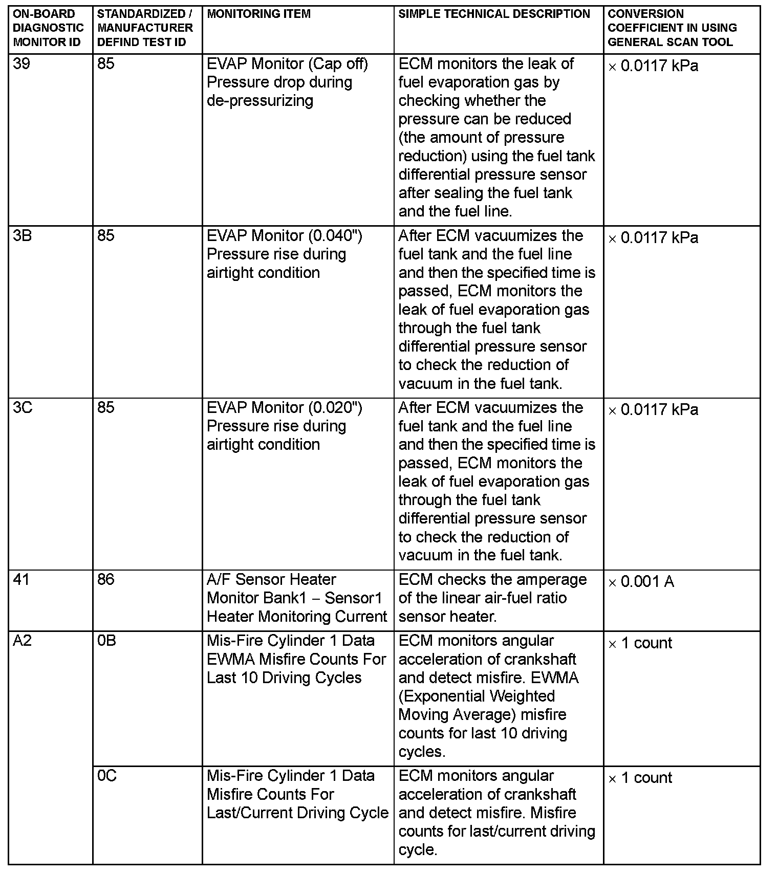 MODE 6 REFERENCE TABLEThe engine control module (ECM) monitors the condition of emission control system.