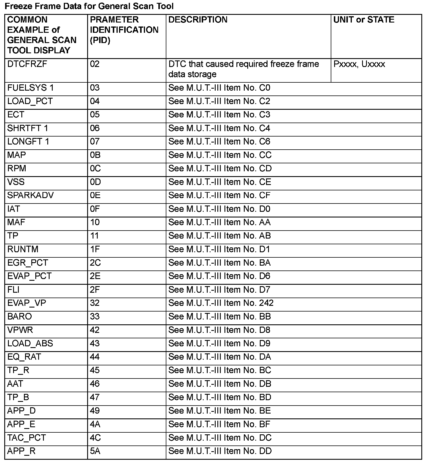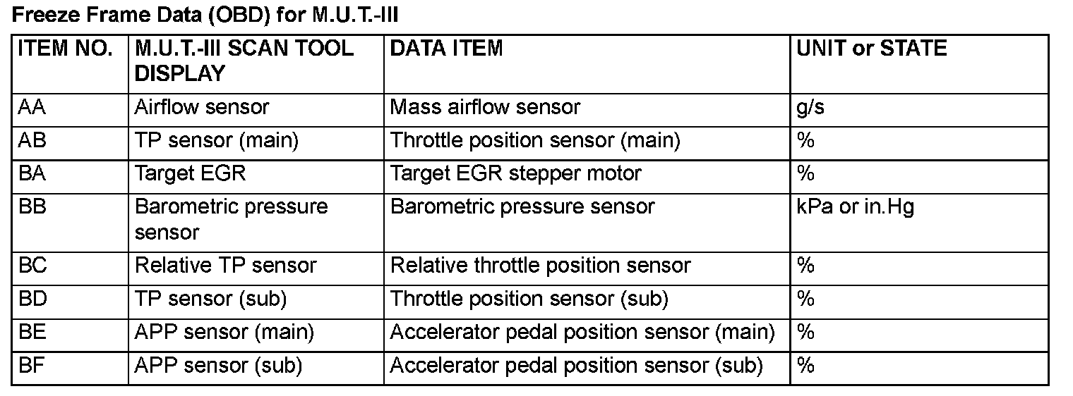 Freeze Frame Data (OBD) for M.U.T.-III