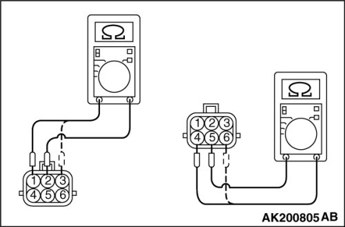 Connect terminals 4 and 6 to the negative (-) terminal of the battery, in order to test whether the stepper motor vibrates (with a slight shudder), indicating that the stepper motor is operating.