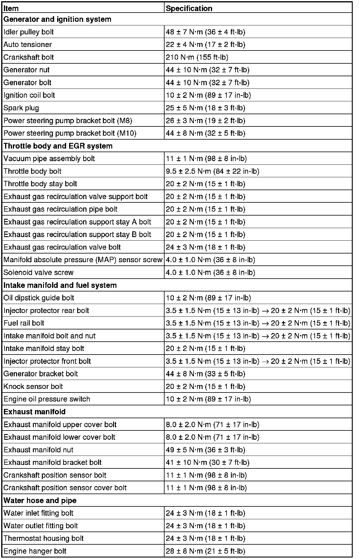 Fastener Tightening Specifications