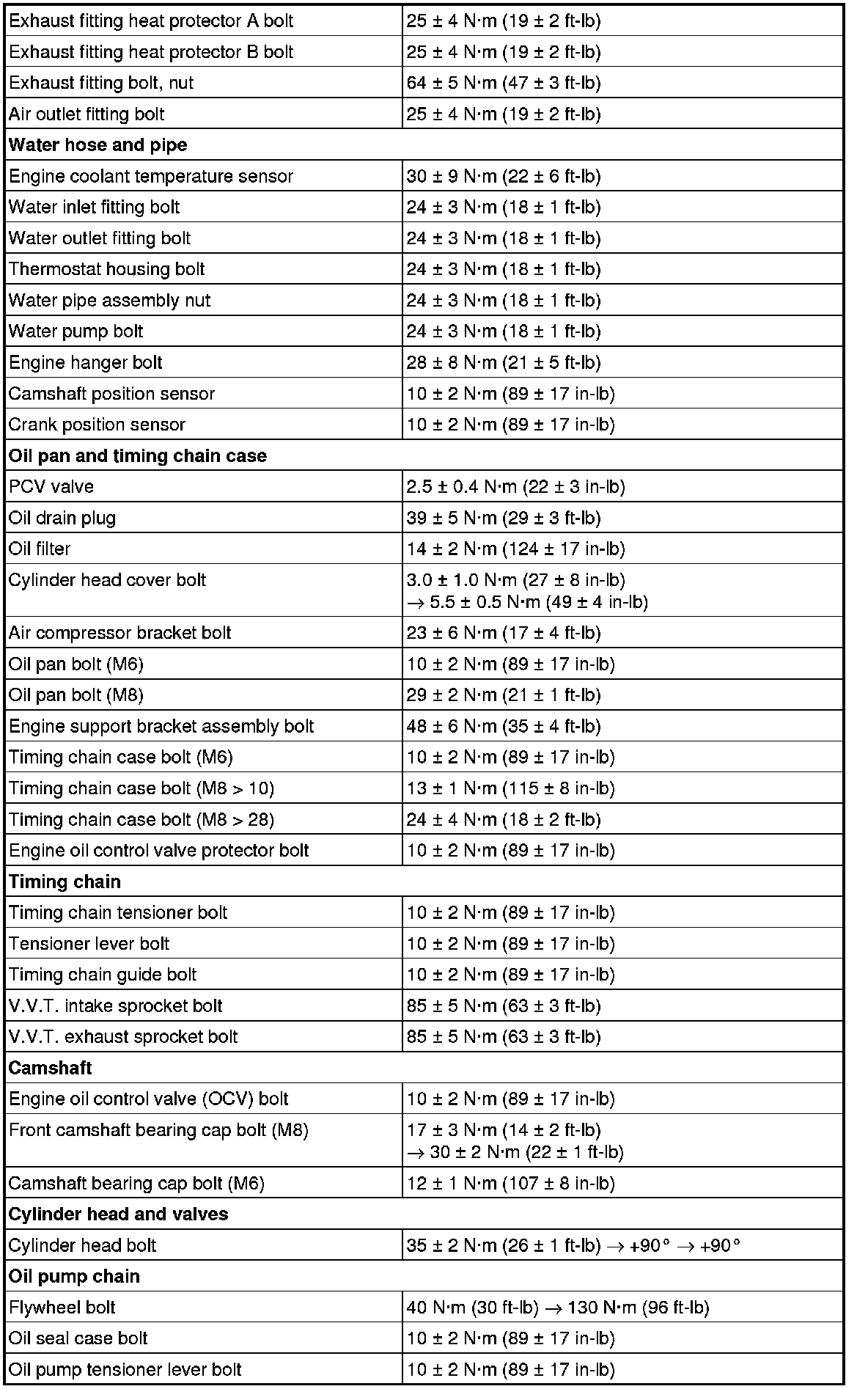 Fastener Tightening Specifications