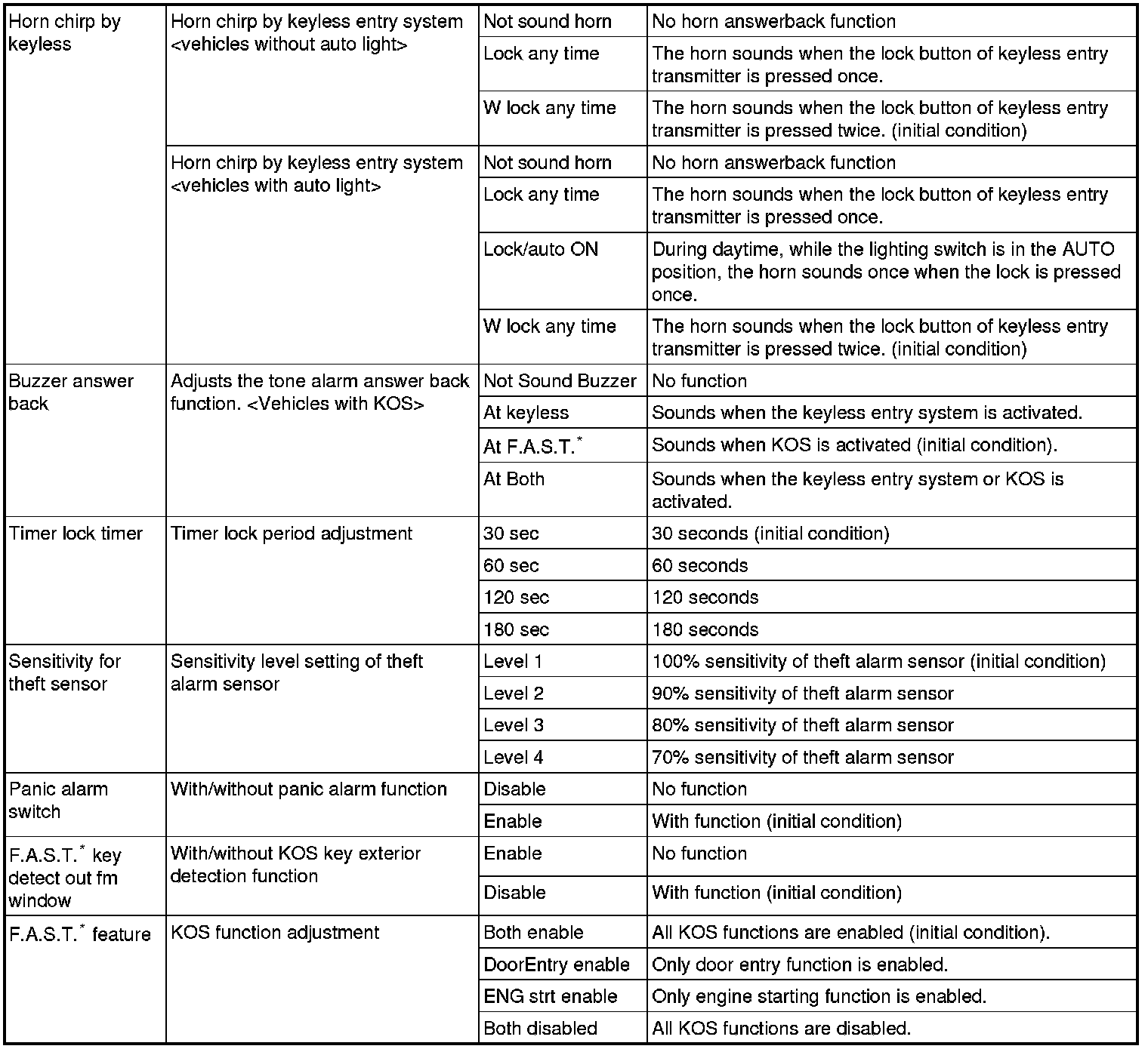 By operating the ETACS system or MMCS of scan tool MB991958, the following functions can be programmed. The programmed information is held even when the battery is disconnected.