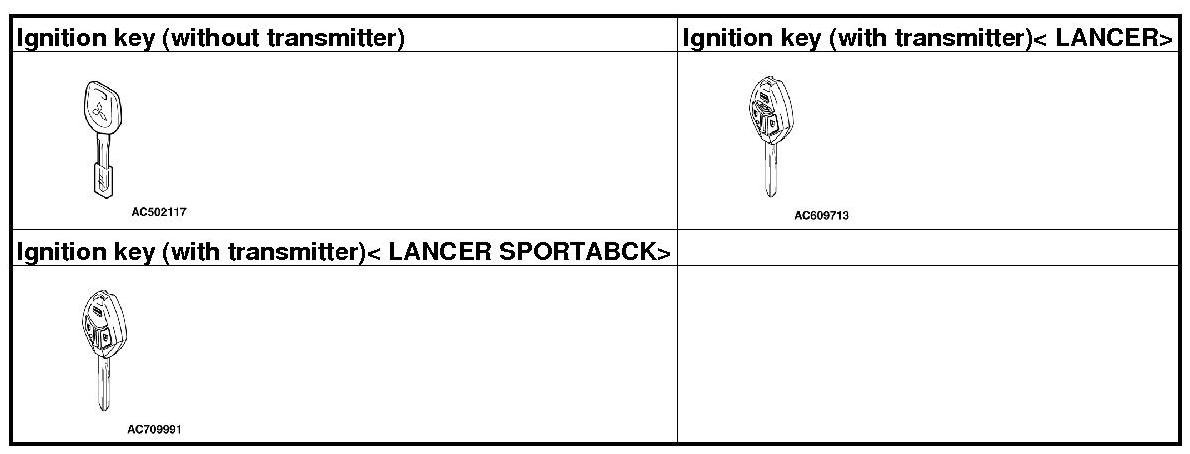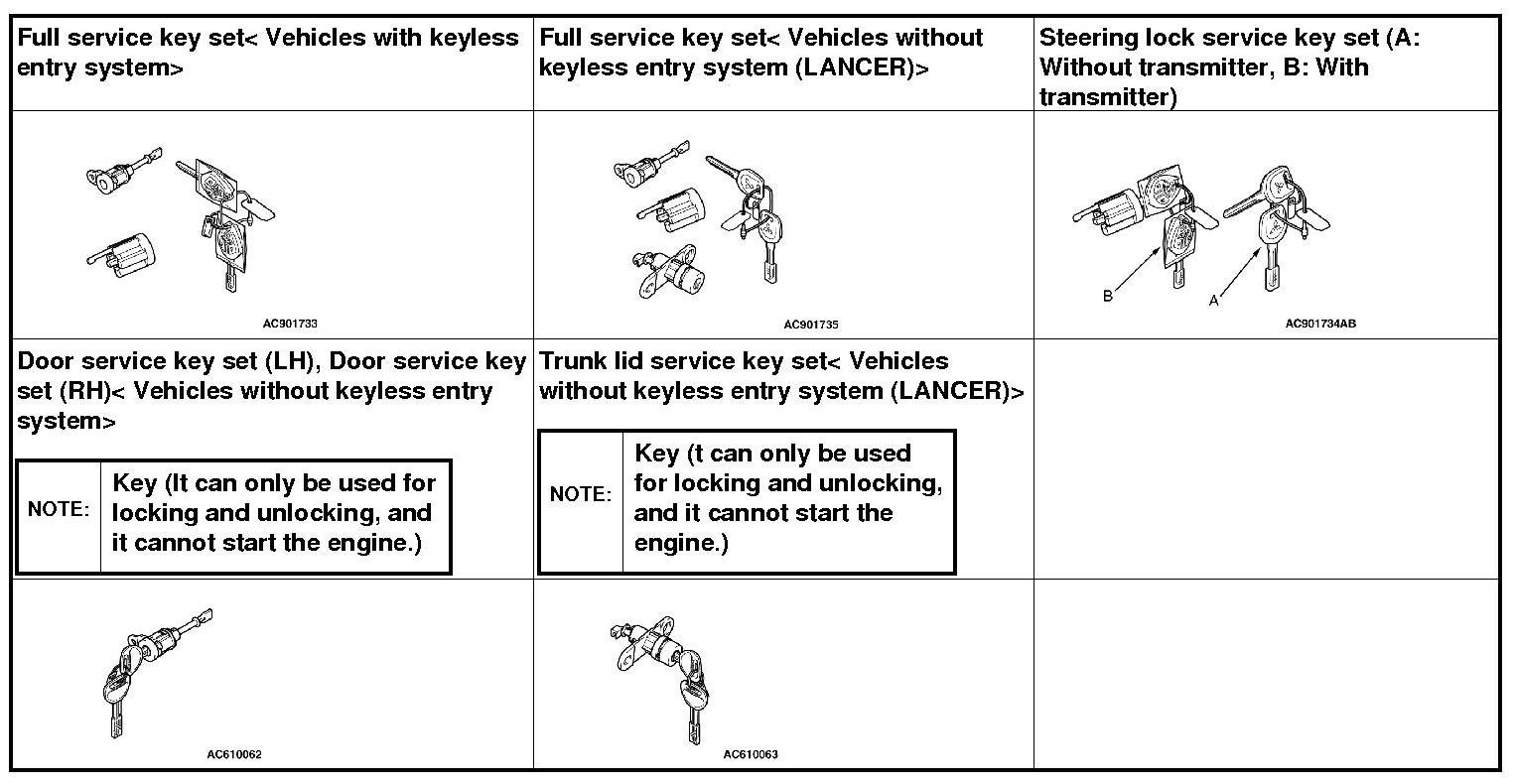 *: Key (the key that can be used to lock/unlock the door or trunk lid only)
