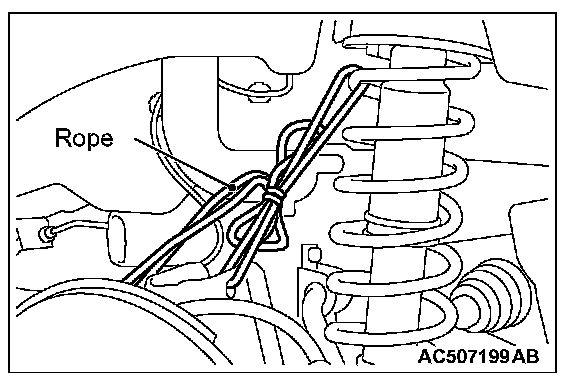 To avoid the break hose load, fix the trailing arm assembly with a rope as shown in the figure.