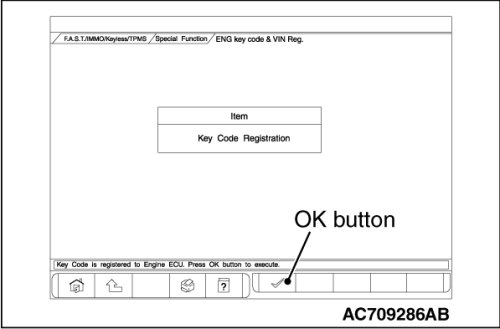 11. Push the OK button after "ENG key code & VIN Reg." is displayed.