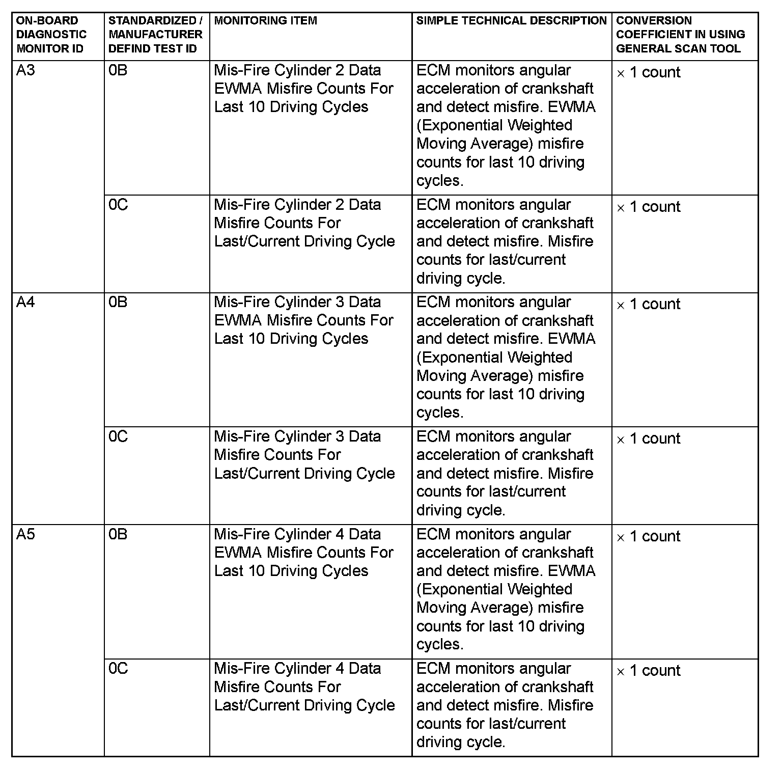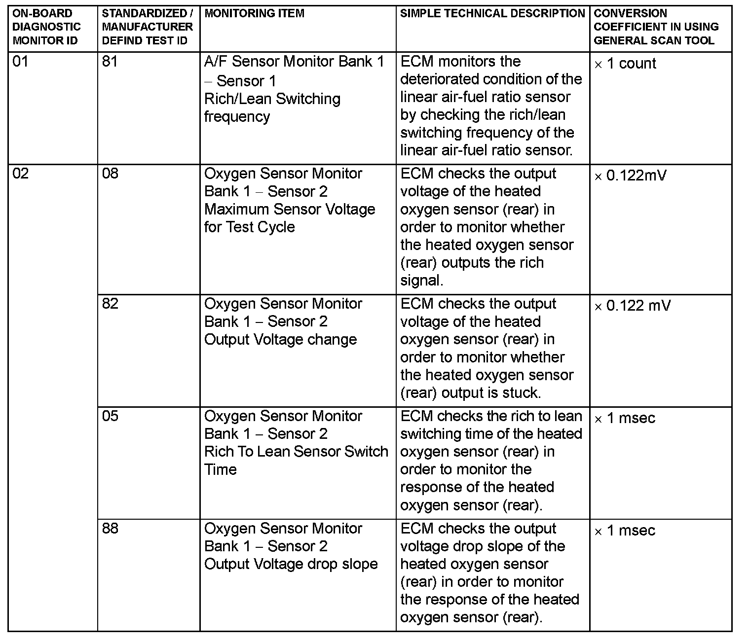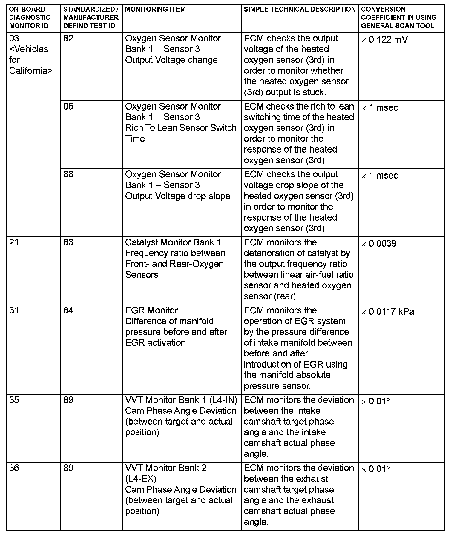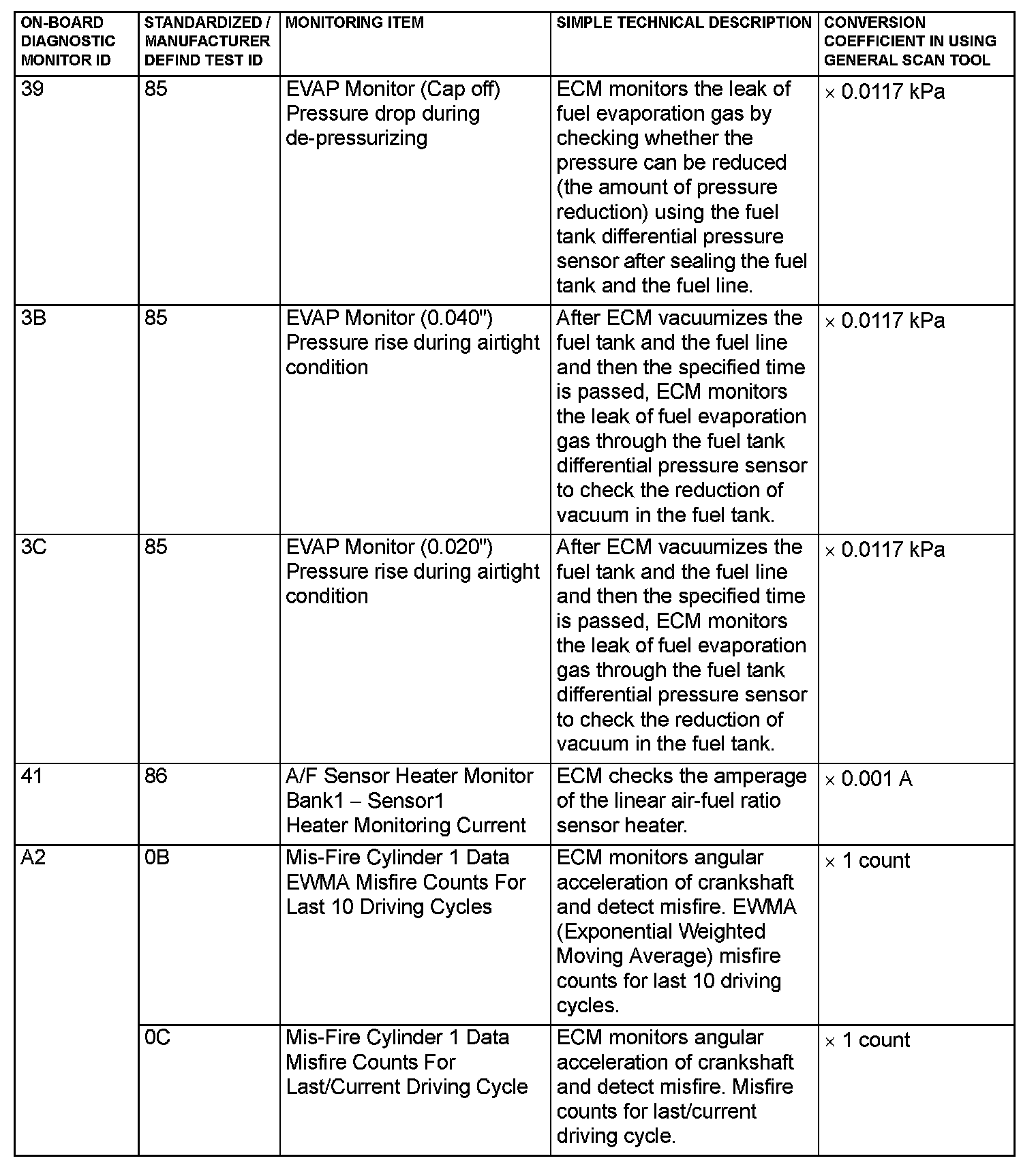 MODE 6 REFERENCE TABLEThe engine control module (ECM) monitors the condition of emission control system.