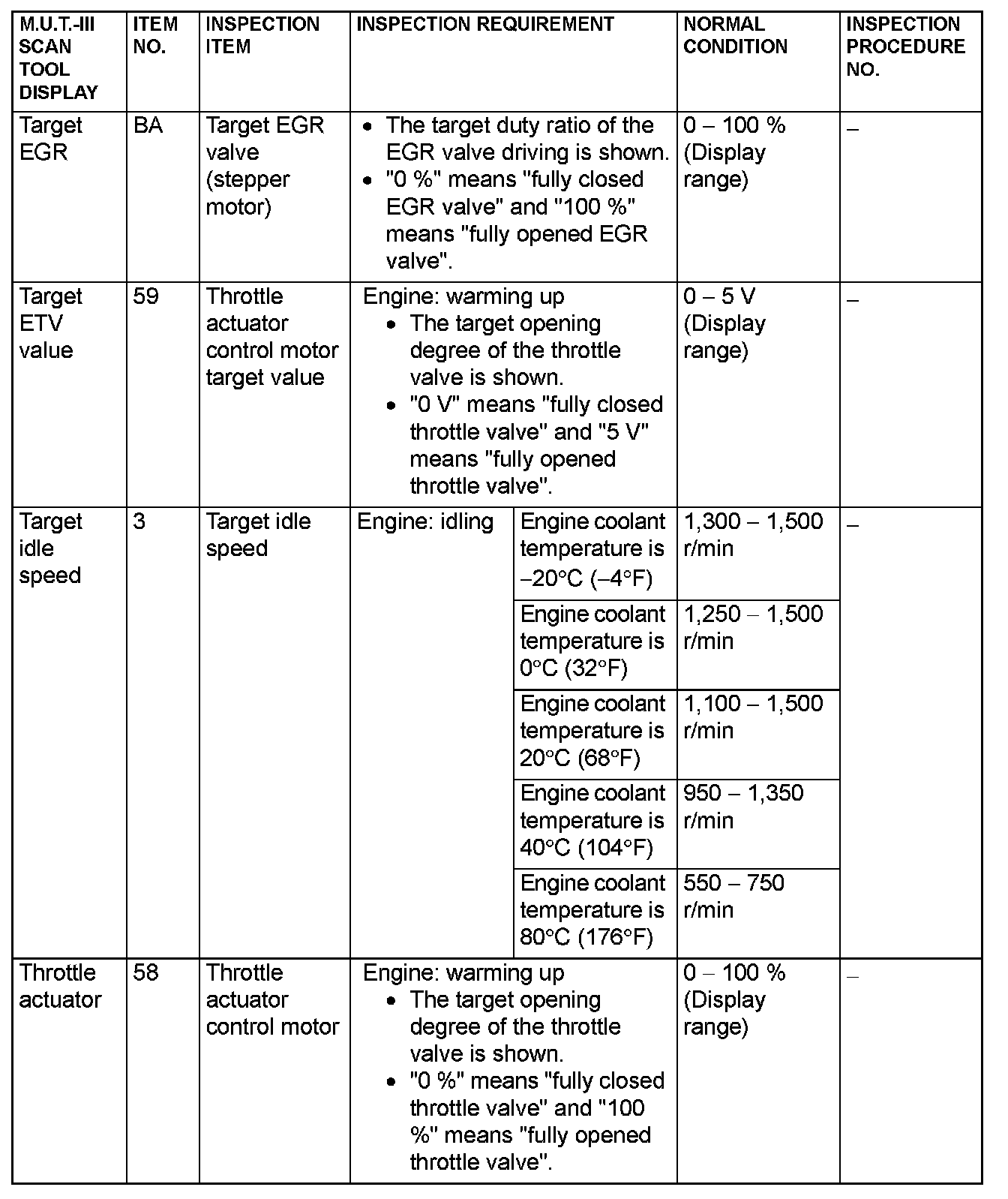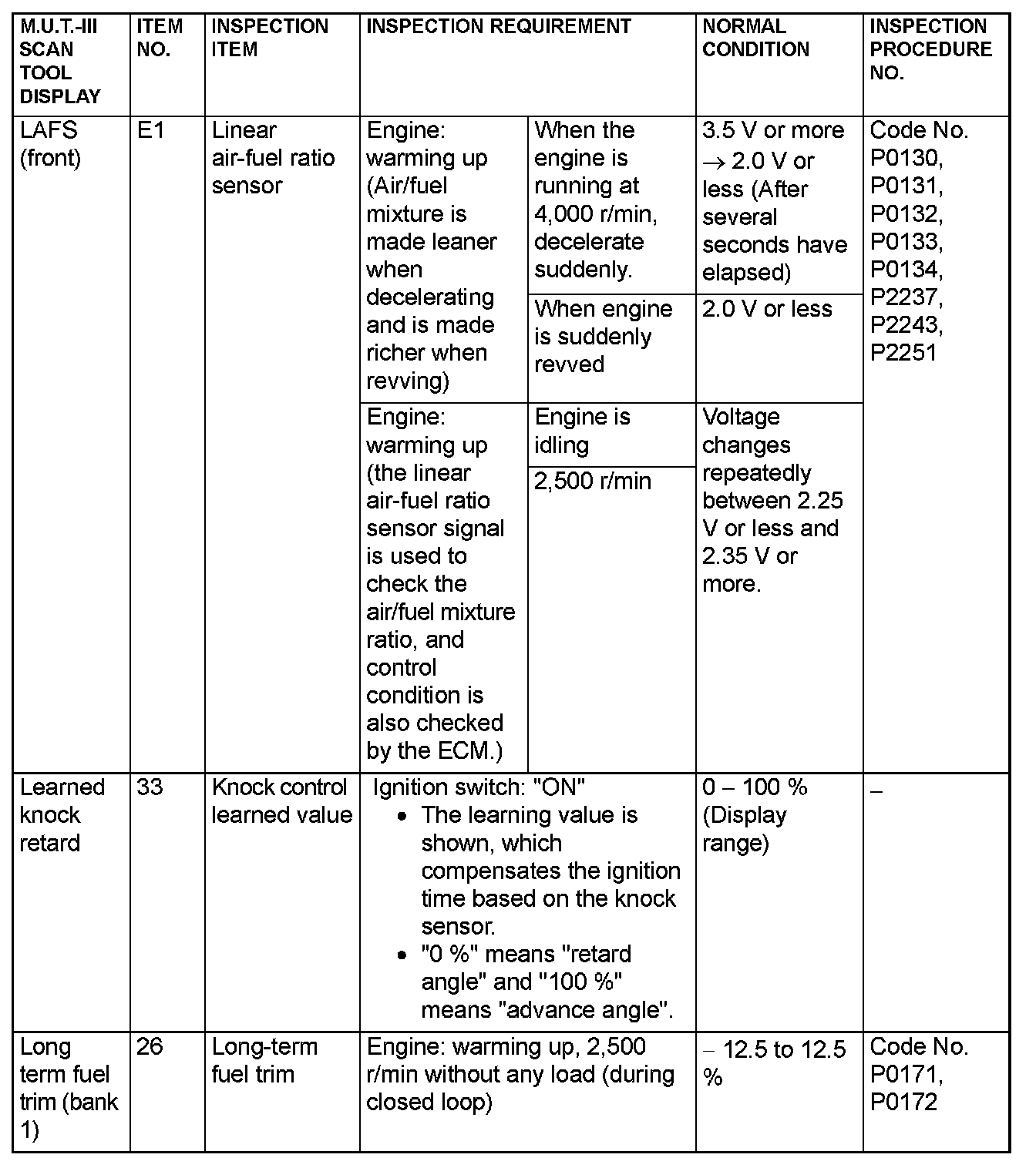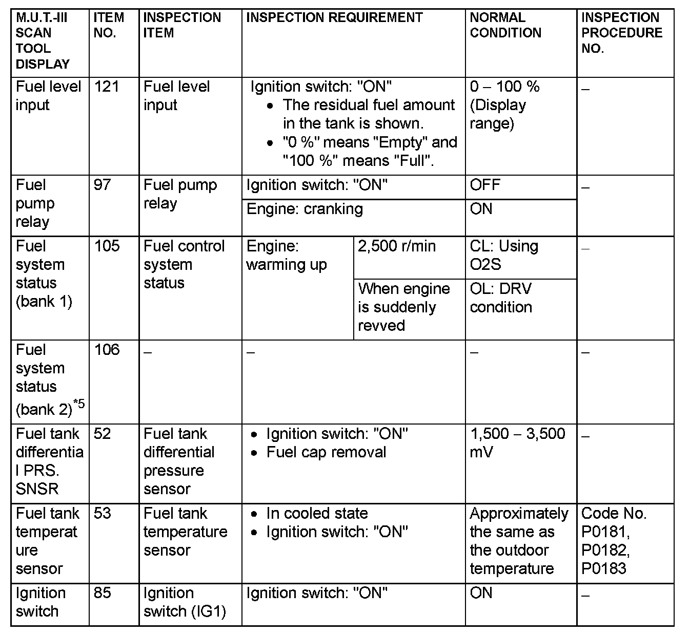 - *5: Data items are displayed on scan tool display, but the in-line 4 engine is not applicable and its data is displayed as "N/A".