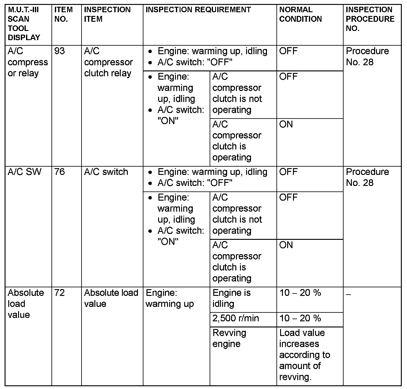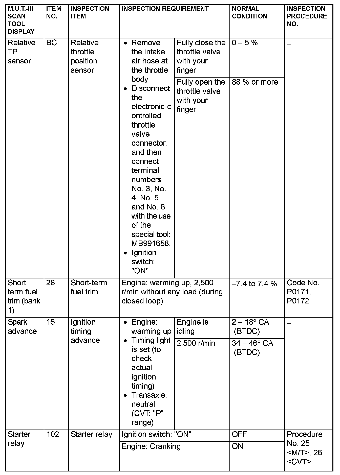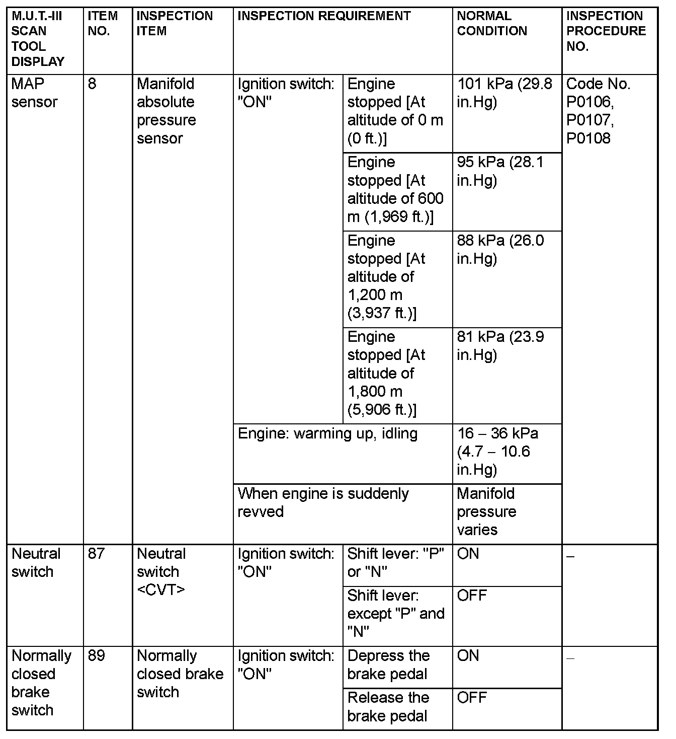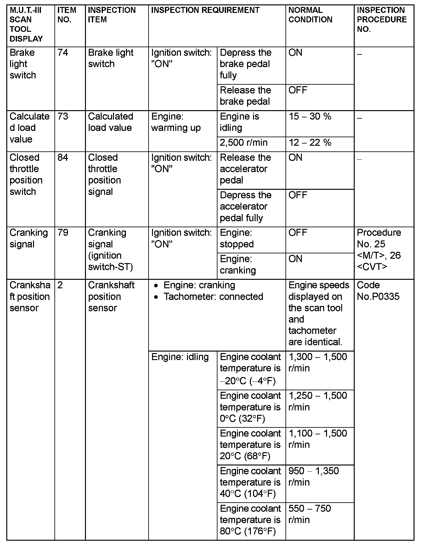 - *5: Data items are displayed on scan tool display, but the in-line 4 engine is not applicable and its data is displayed as "N/A".