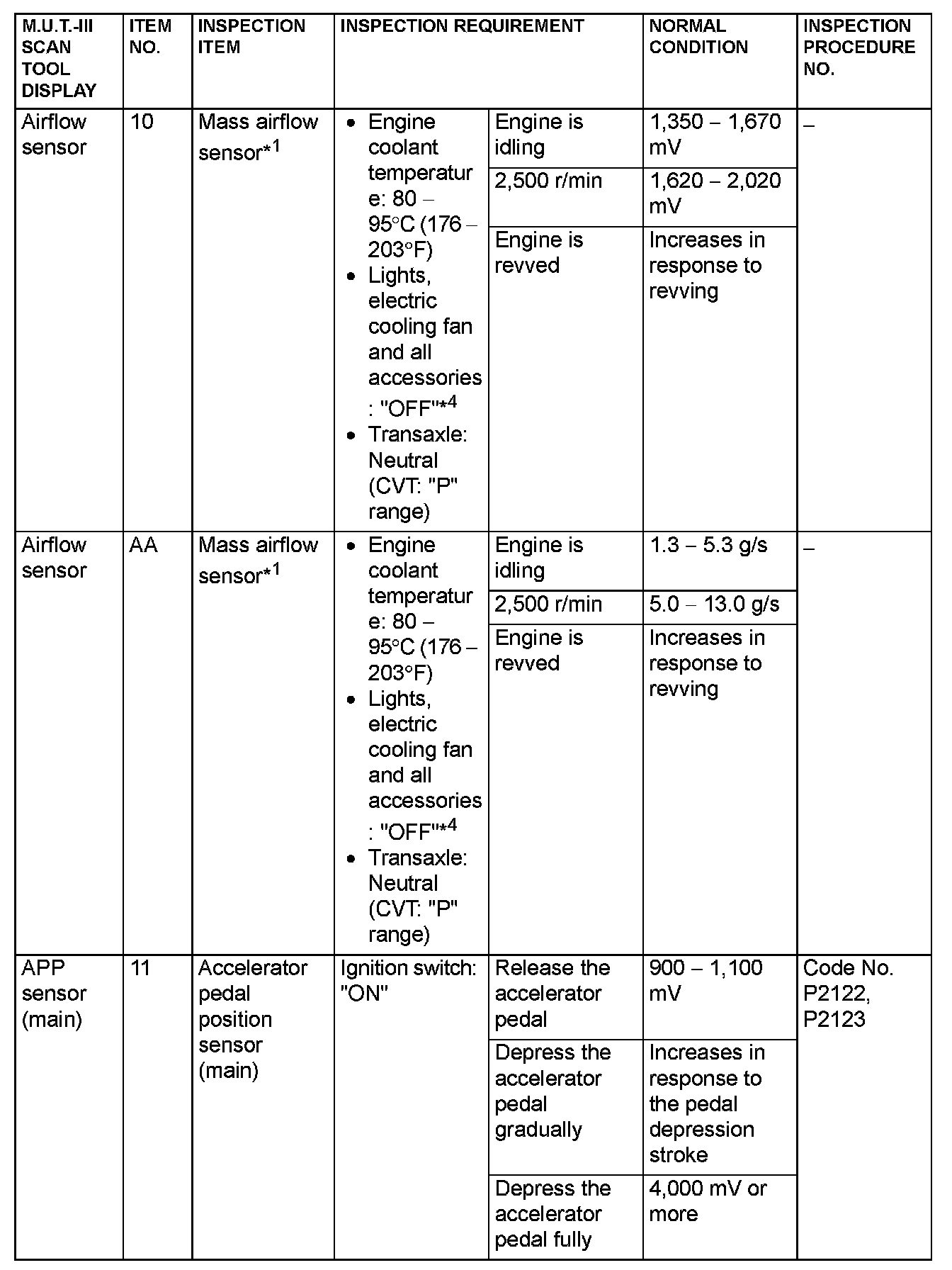 - *1: In a new vehicle [driven approximately 500 km (311 mile) or less], the mass airflow sensor output value is sometimes 10% higher than the standard value.