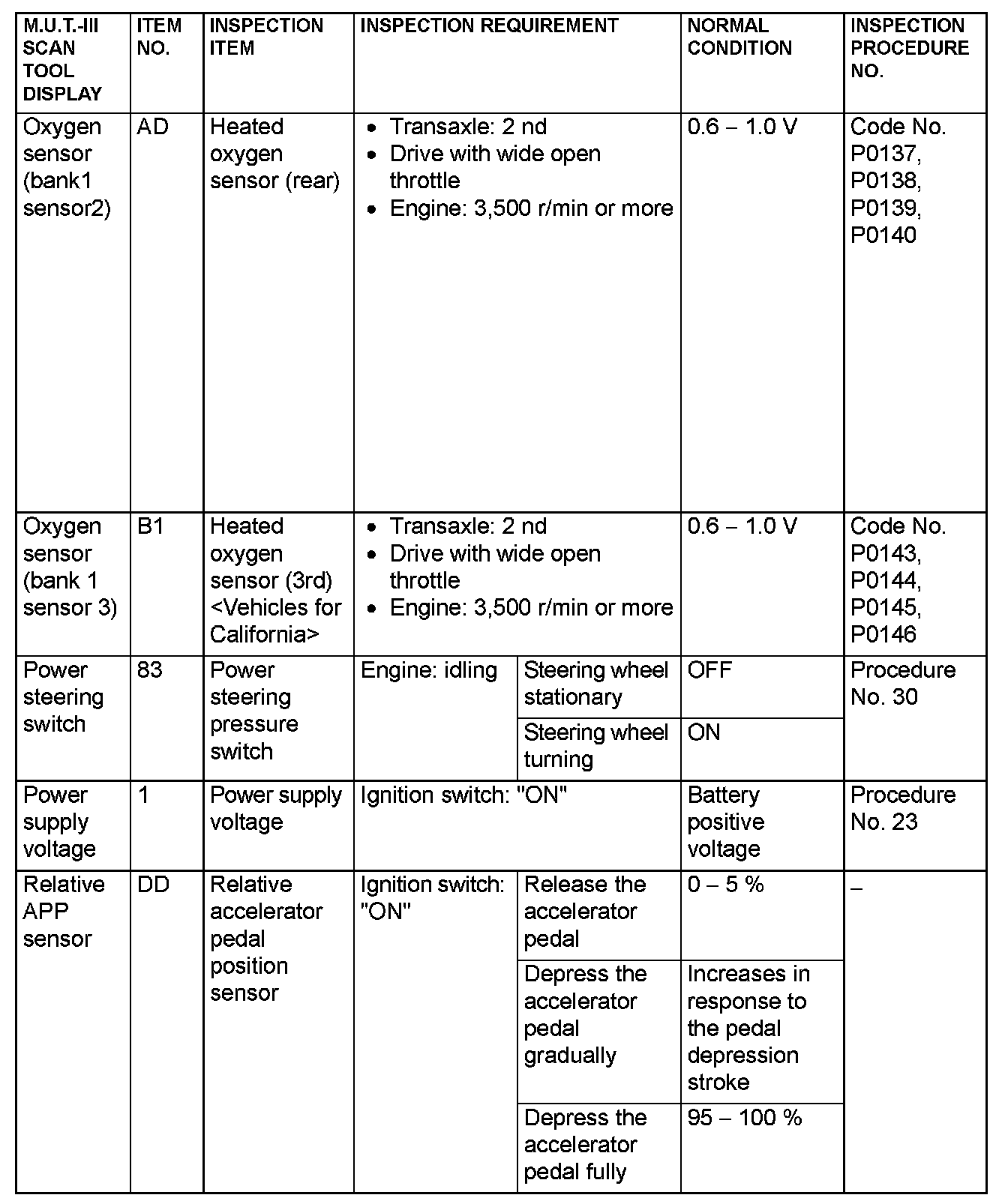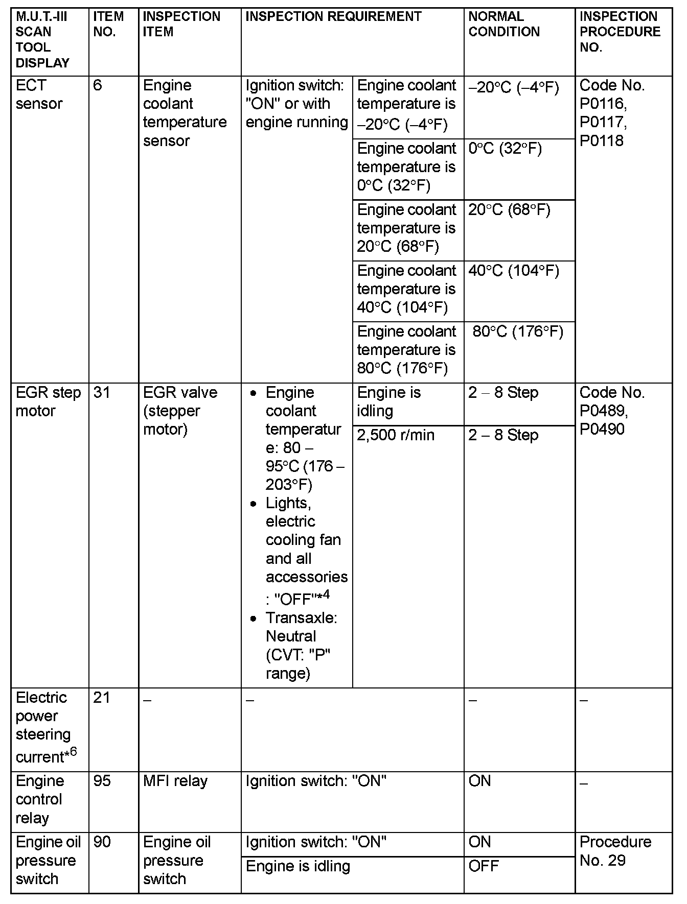 - *6: Data items are displayed on the scan tool display, but the electric power steering is not mounted. The data are displayed as "0 A".