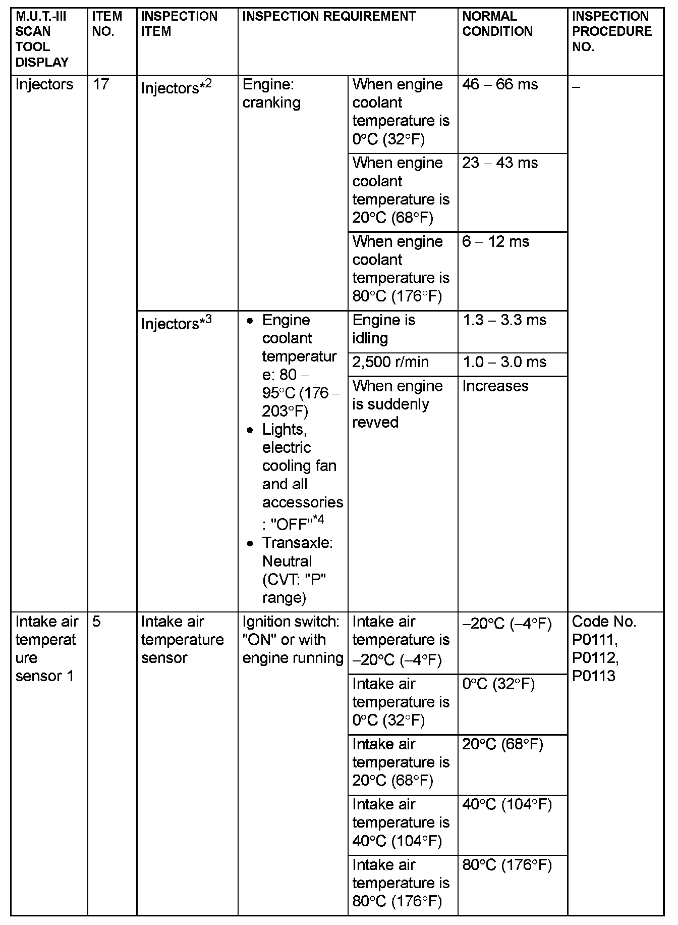 - *3: In a new vehicle [driven approximately 500 km (311 mile) or less], the injector drive time is sometimes 10% longer than the standard time.