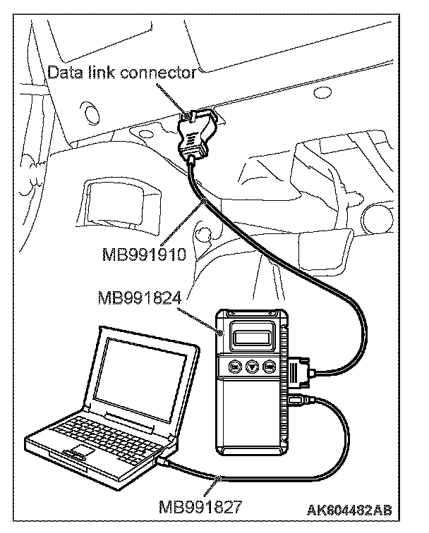 5. Connect scan tool MB991958 to the data link connector.