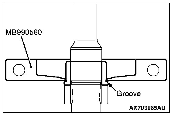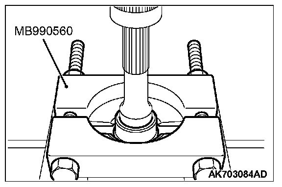 Using special tool MB990560, support the cylindrical roller bearing and remove the cylindrical roller bearing.