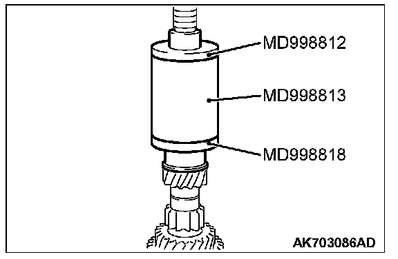 2. Using special tools MD998812, MD998813 and MD998818, install the cylindrical roller bearing.
