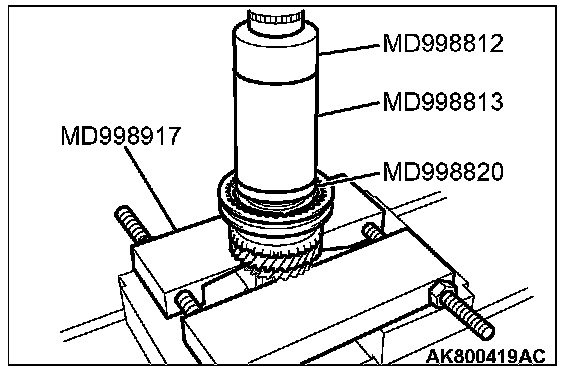 2. Using special tools MD998812, MD998813, MD998820 and MD998917, install the radial ball bearing.