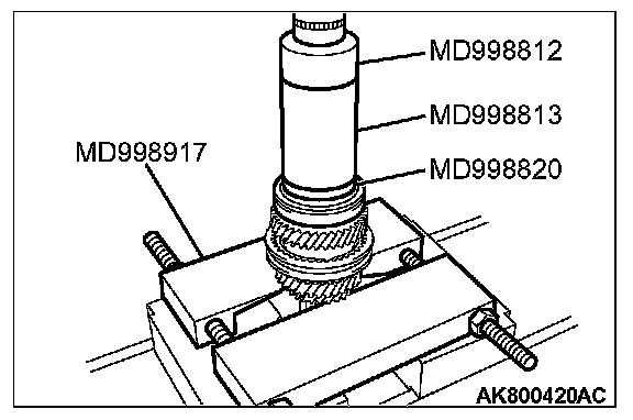 2. Using special tools MD998812, MD998813, MD998820 and MD998917, install the synchronizer sleeve No.2 and synchronizer hub No.2.