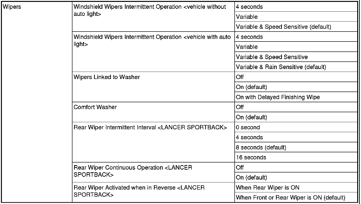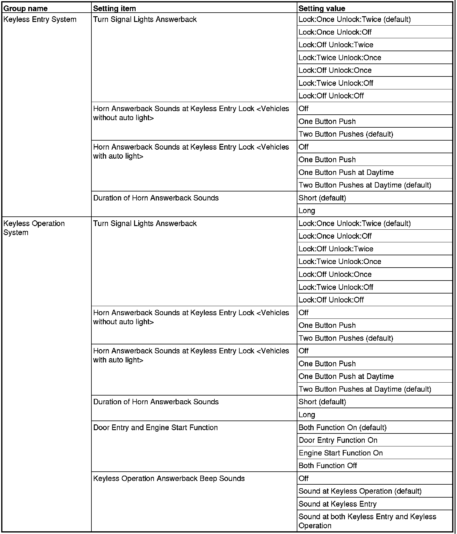 The following ETACS functions can be customized by selecting "Equipment" on the "Settings" screen of the multivision display.