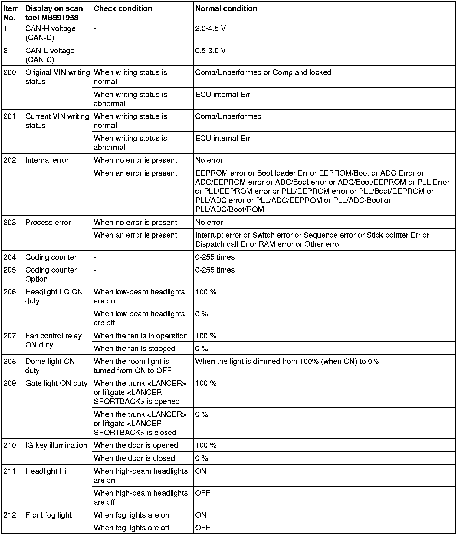 Some items are not displayed on scan tool MB991958 according to the information in the ECU.