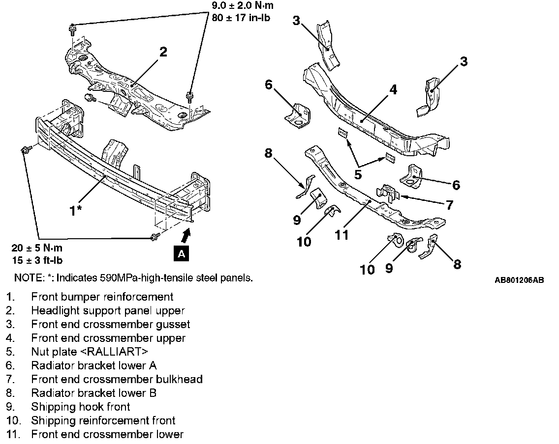 - The 590-MPa class high tensile strength steel panels have been adopted for the front bumper reinforcement to improve the body rigidity.