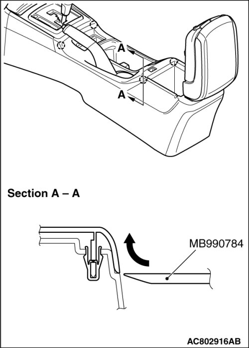 Remove by using special tool MB990784 (ornament remover) as shown in the figure.