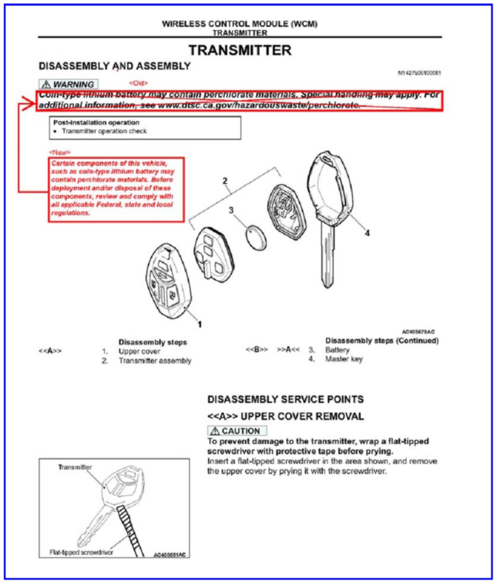 Group 42C - Wireless Control Module (WCM) - Transmitter - Disassembly and Assembly