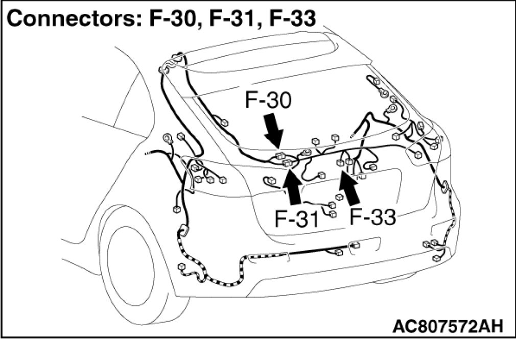 STEP 2. Check KOS-ECU connector C-31 and liftgate lock release handle connector F-33 for loose, corroded or damaged terminals, or terminals pushed back in the connector.