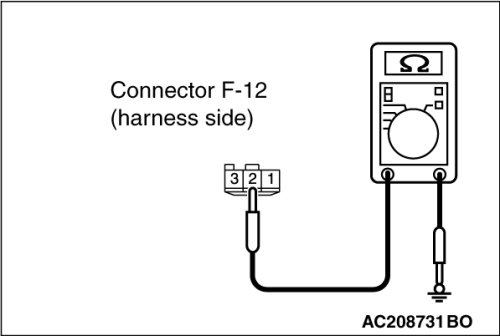 (1)Disconnect trunk lid lock actuator connector F-12 and measure the resistance available at the wiring harness side of the connector.