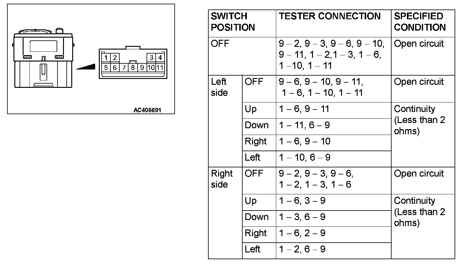 DOOR MIRROR CONTROL SWITCH CONTINUITY CHECK