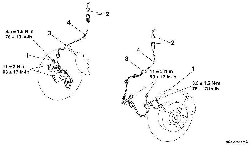 As for removal and installation of the front wheel speed sensor, refer to Wheel Speed Sensor Removal and Installation Anti-Lock Braking System (ABS).