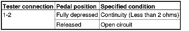 2. Connect an ohmmeter to the clutch switch connector, and then check for continuity when the clutch pedal is fully depressed and when it is released outward.