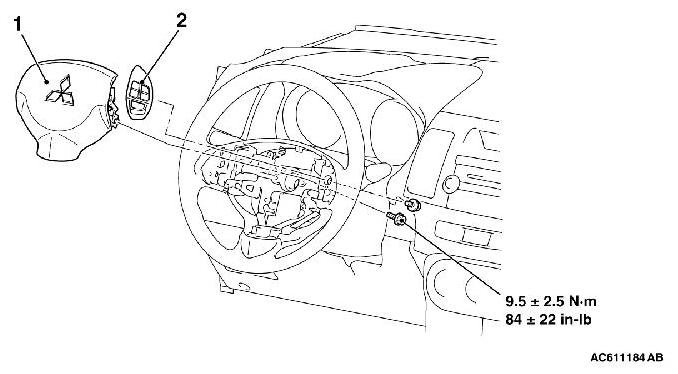 Before removing the driver's air bag module assembly, always refer to Service Precautions Technician Safety Information, and Driver's Air Bag Module and Clock Spring Removal and Installation (Except Ralliart).