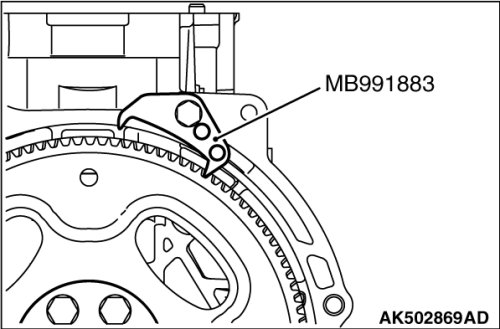 2. Use special tool MB991883 to secure the drive plate or flywheel.