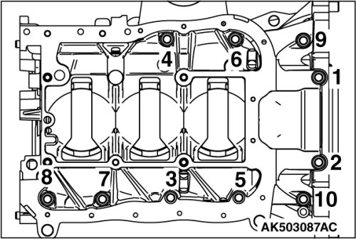 4. Tighten the ladder frame to the specified tightening torque in the order shown in the illustration.