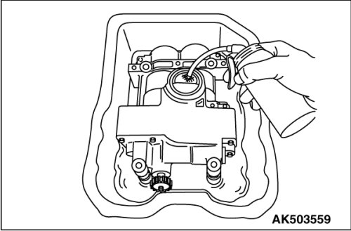 When the new balancer shaft module is installed, supply oil to the oil pump and the balancer shaft bearing in the balancer shaft module using the following procedures.