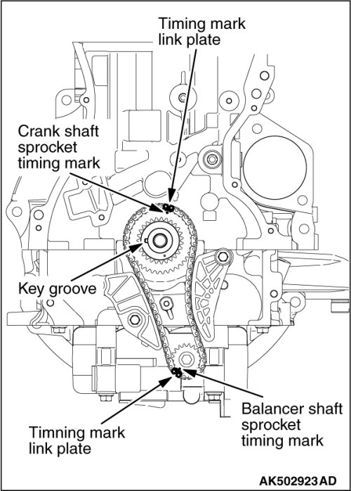 4. Loop the balancer chain, aligning its link plate with the timing mark.