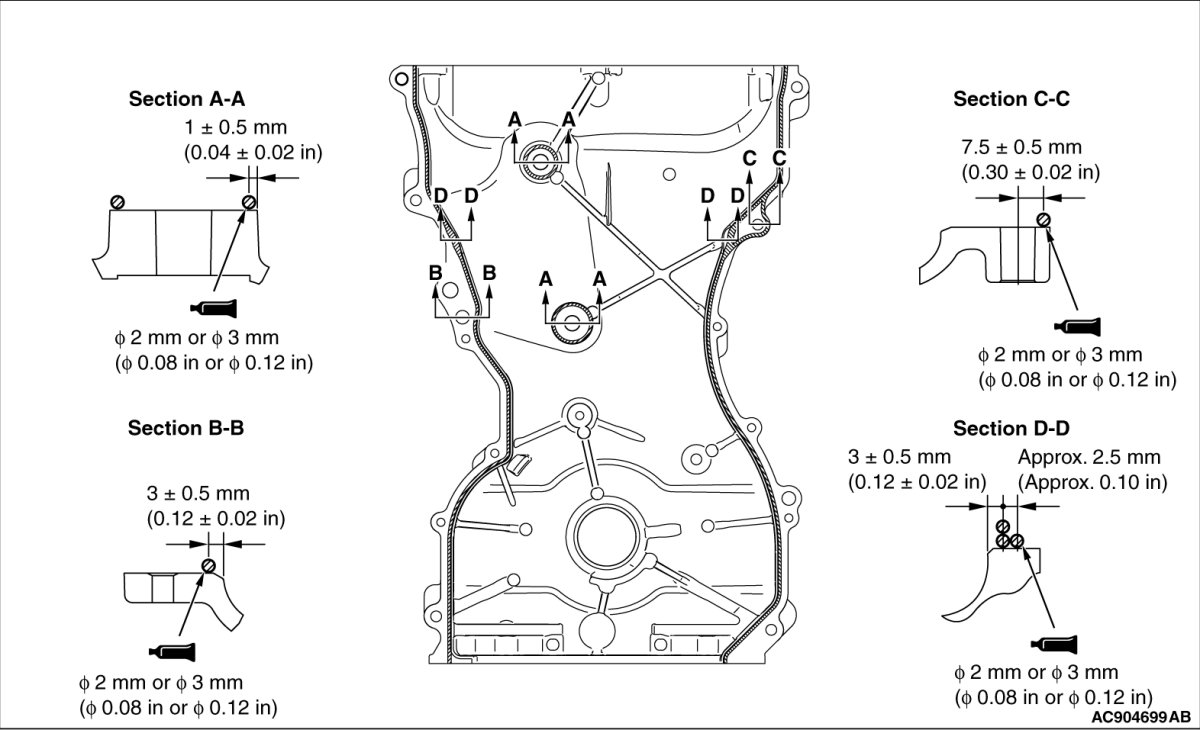 - After the installation, until a sufficient period of time (one hour or more) elapses, do not apply the oil or water to the sealant application area or start the engine.