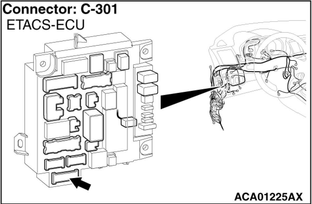 (1)Disconnect the scan tool and ETACS-ECU connector C-301, and check the wiring harness.