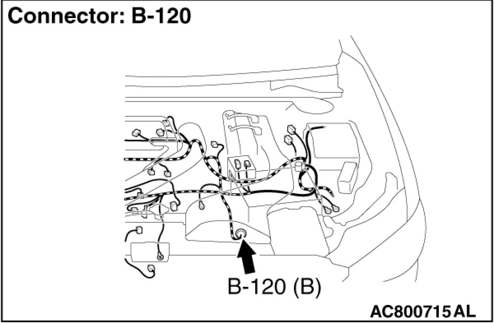 (TC-SST-ECU) connector B-120 for loose, corroded or damaged terminals, or terminals pushed back in the connector.