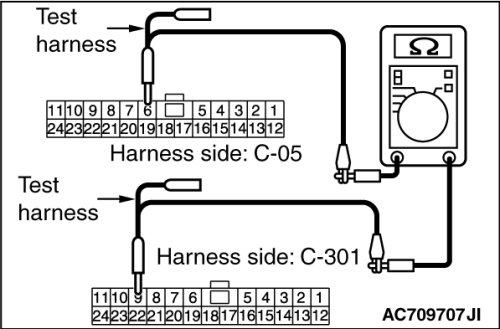 (1)Disconnect joint connector (CAN2) C-05 and ETACS-ECU connector C-301, and check the wiring harness.