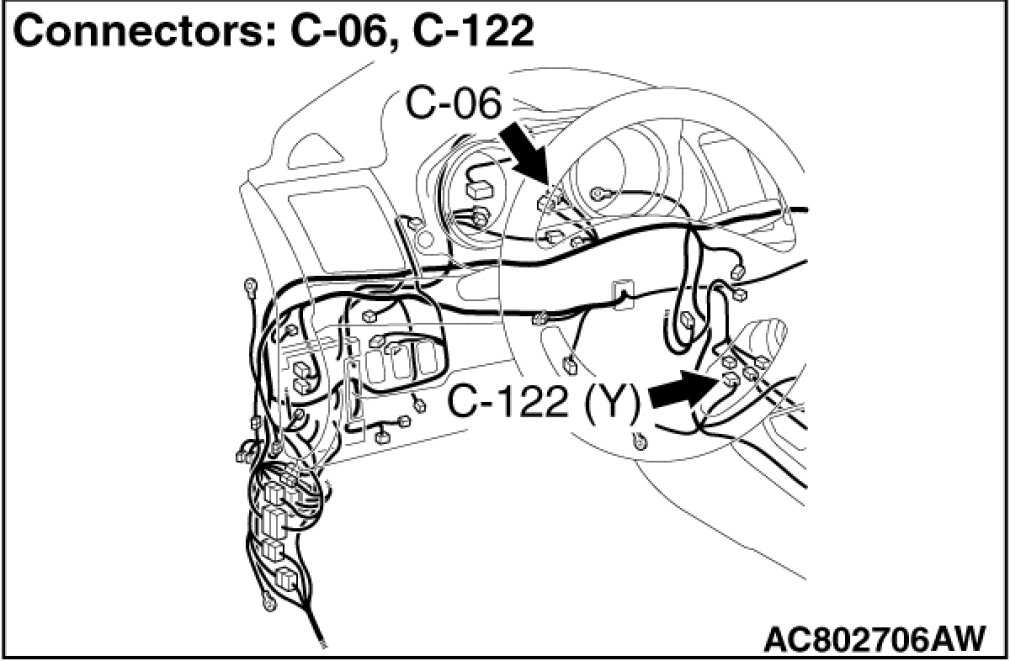 STEP 1. Check joint connector (CAN1) C-06 and SRS-ECU connector C-122 for loose, corroded or damaged terminals, or terminals pushed back in the connector.