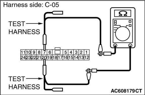 STEP 16. Check the wiring harness between joint connector (CAN2) C-05 and ETACS-ECU connector C-301 for line-to-line short. Measure the resistance at joint connector (CAN2) C-05.