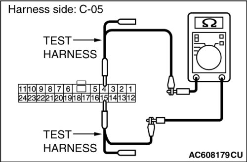 STEP 5. Check the wiring harness between joint connector (CAN2) C-05 and ETACS-ECU connector C-301 for line-to-line short. Measure the resistance at joint connector (CAN2) C-05.