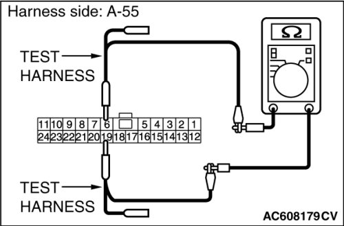 STEP 11. Check the wiring harness between joint connector (CAN4) A-55 and ECM connector B-109 [RALLIART] for line-to-line short. Measure the resistance at joint connector (CAN4) A-55.
