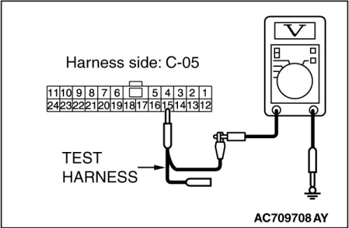 STEP 15. Check the wiring harness between joint connector (CAN2) C-05 and ETACS-ECU connector C-301 for short to power supply (voltage measurement).