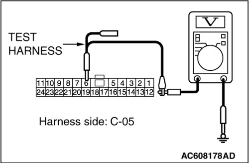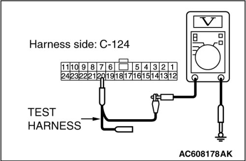 STEP 7. Check the wiring harness between joint connector (CAN3) C-124 and ECM connector B-109 [except RALLIART] for a short to power supply. Measure the voltage at joint connector (CAN3) C-124.
